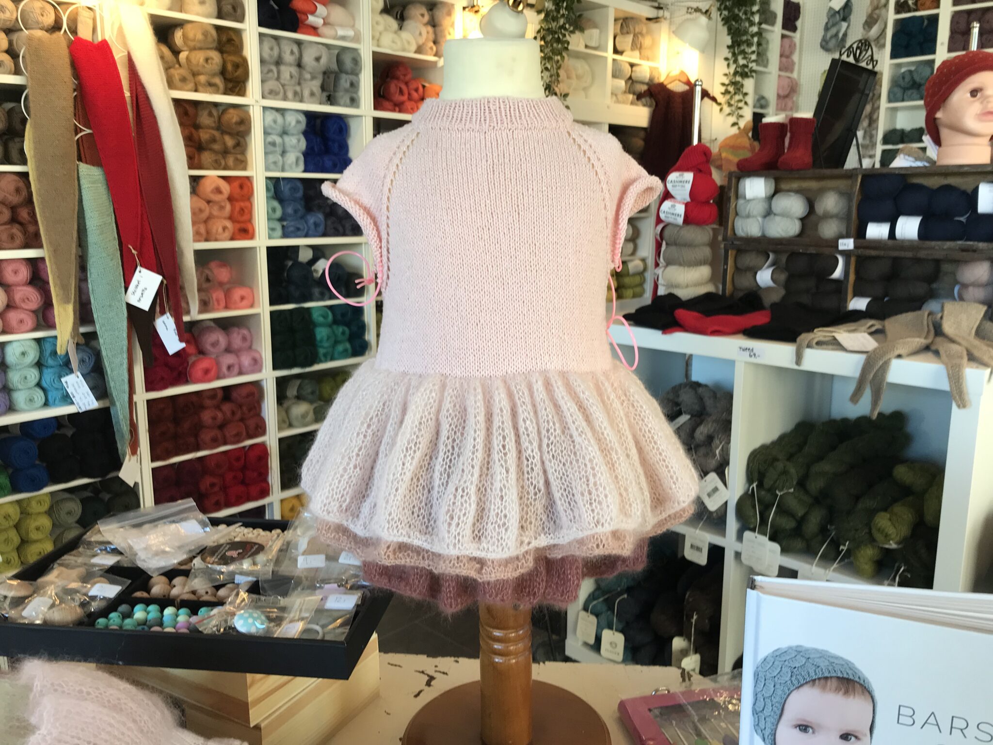 Evt. strømpepinde eller lille rundpind nr. 3 til ærmerne
