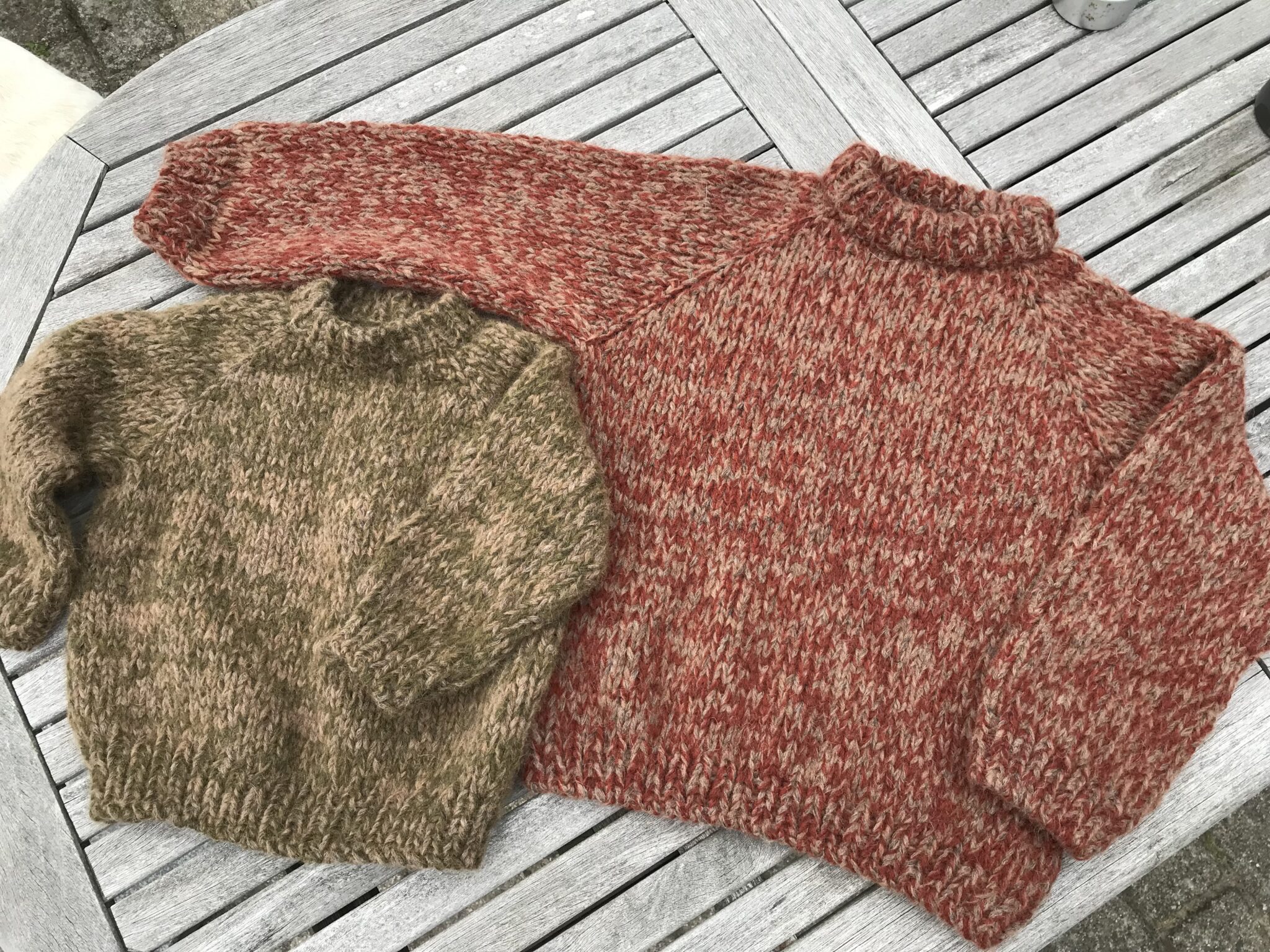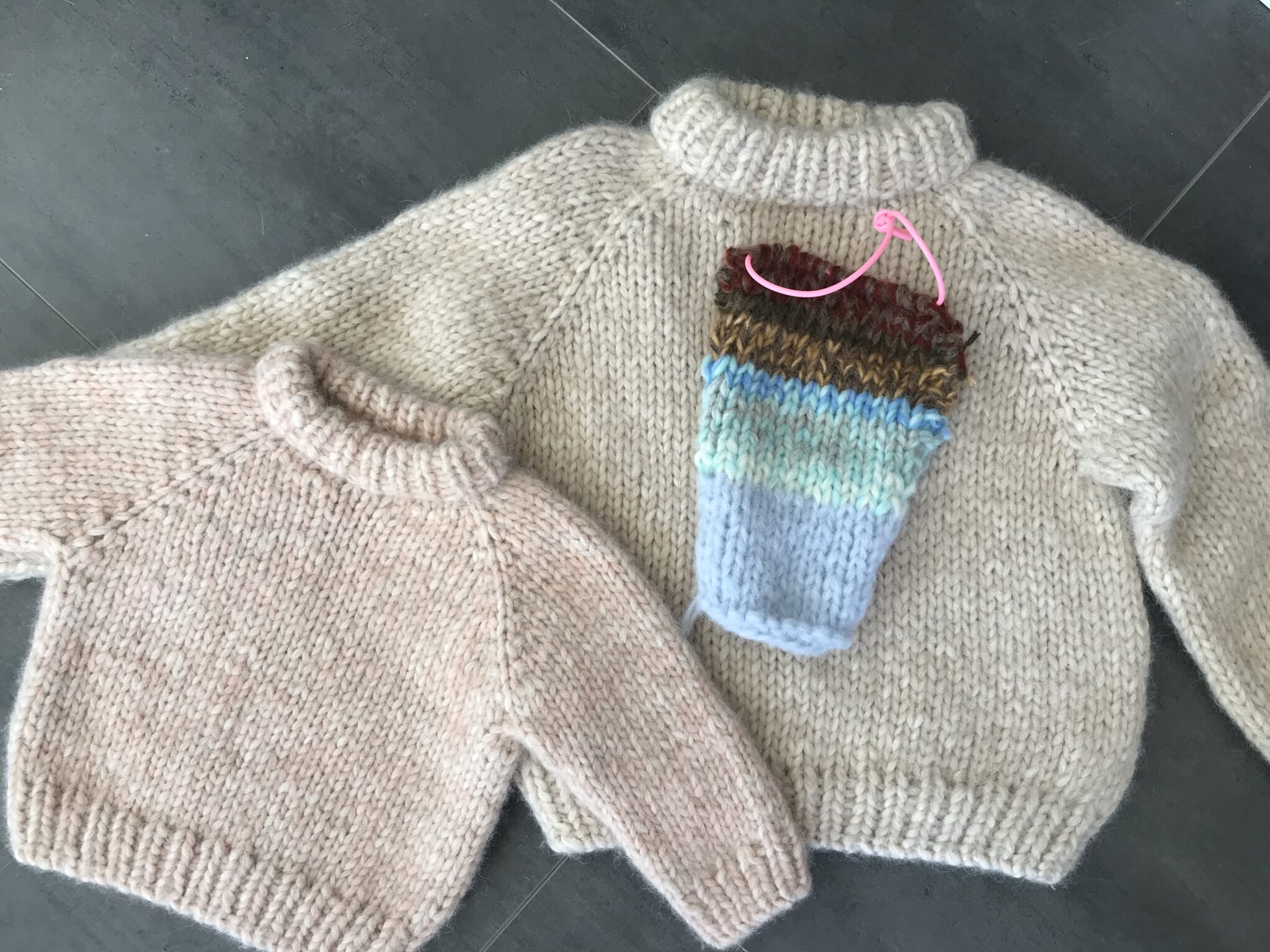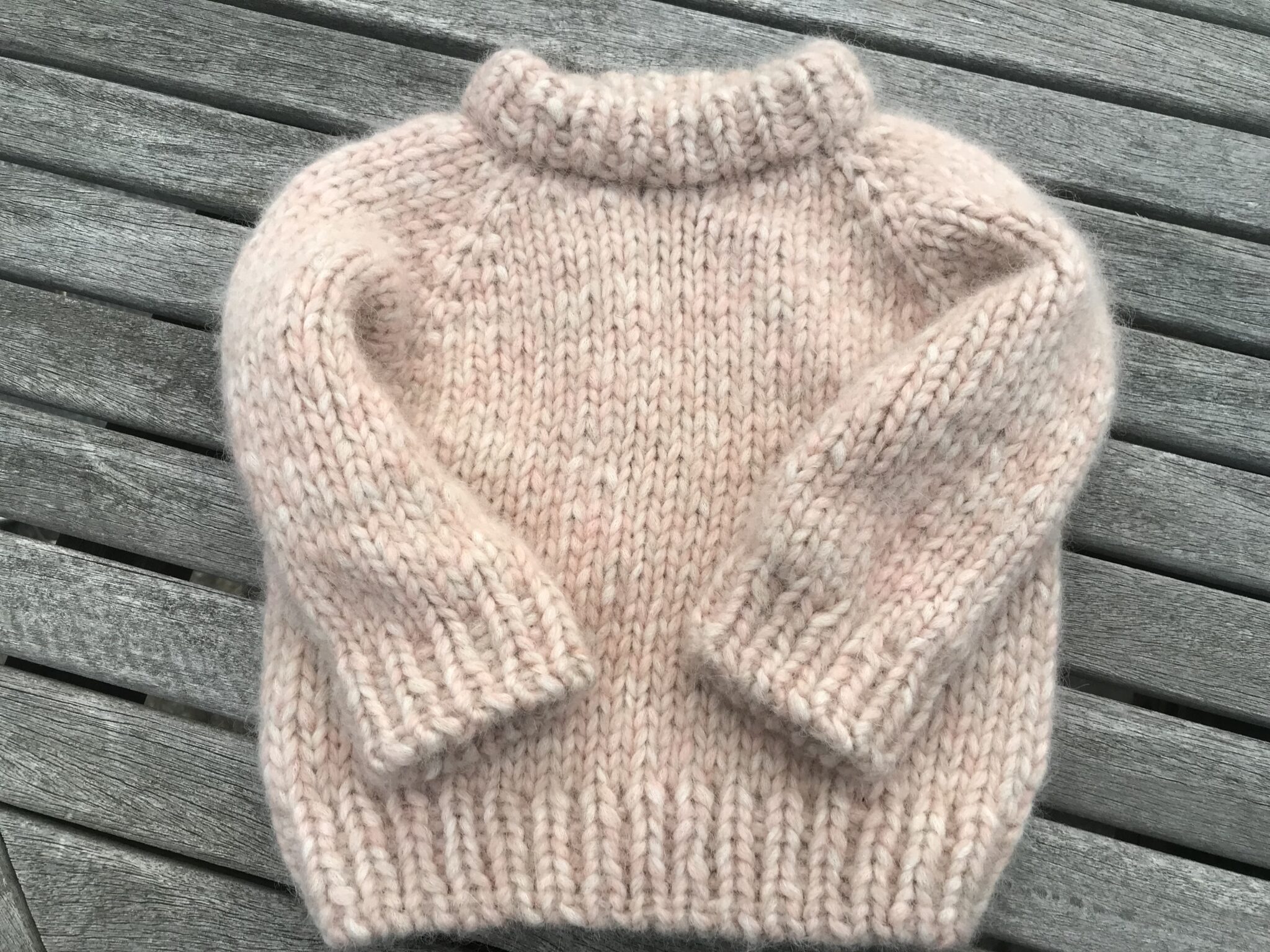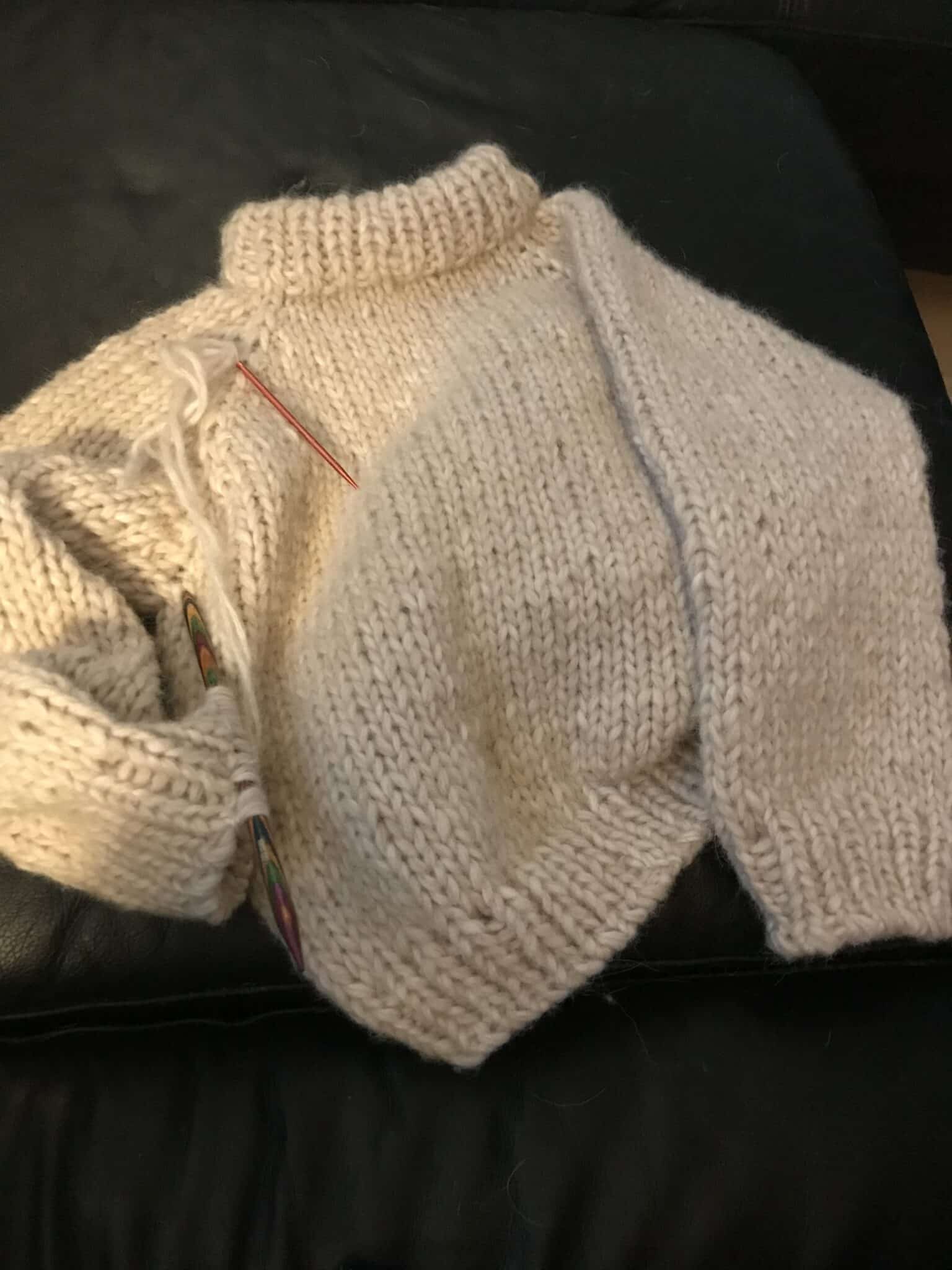 *På ærmekanter har jeg strikket på pind nr. 7 for at få dem fastere.