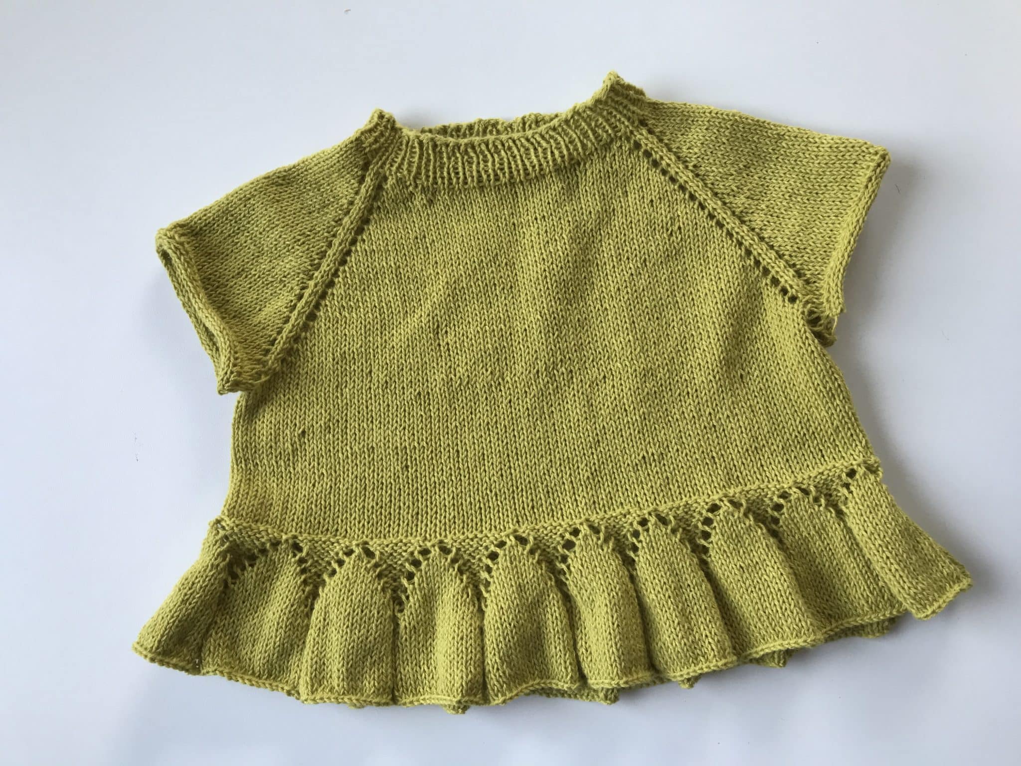 Bluse med raglan, strikket ovenfra og ned til børn. Størrelse 6 mdr. – 12 år